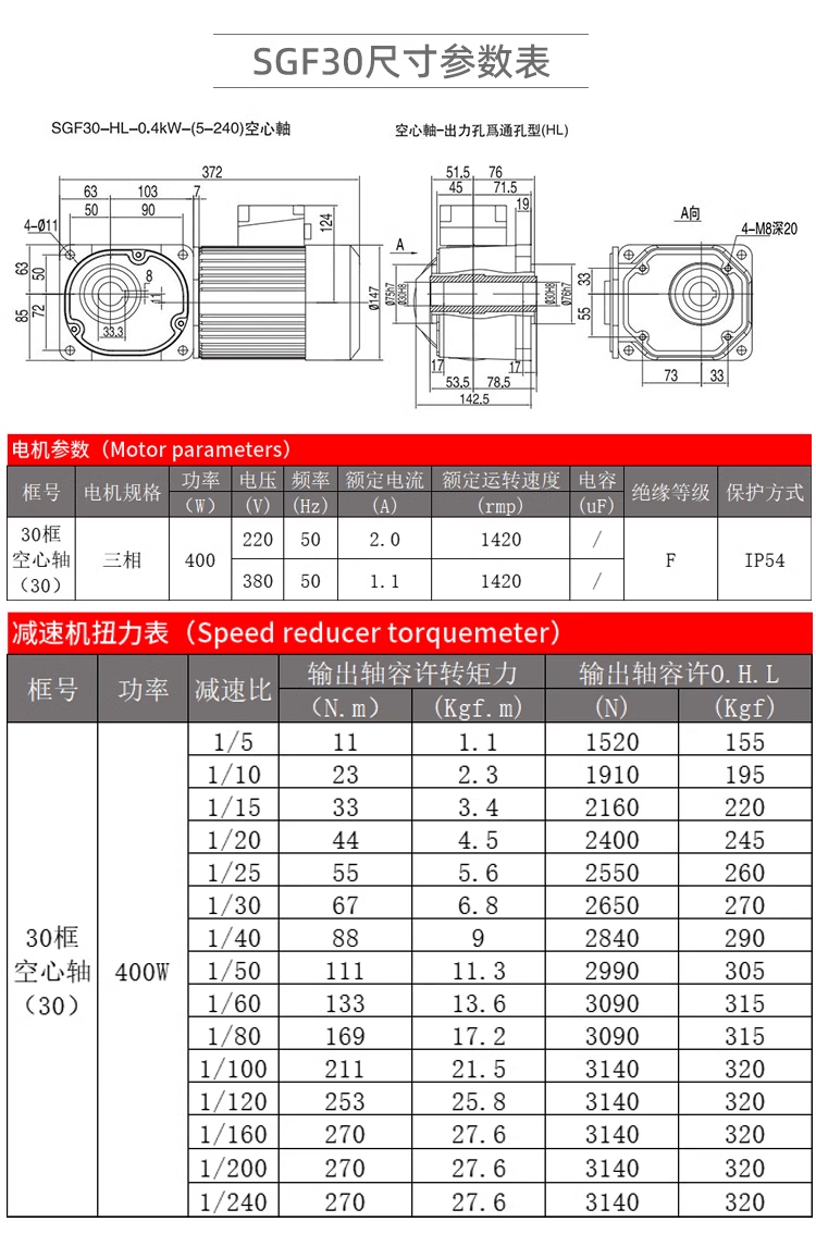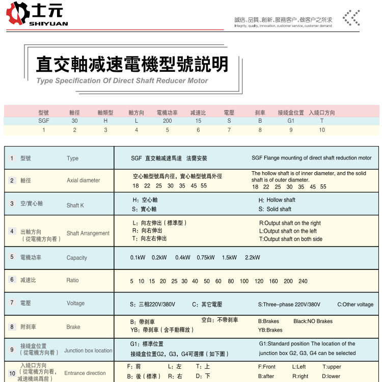 士元直角減速機 SGF系列中空軸減速電機 功率100W-3700W